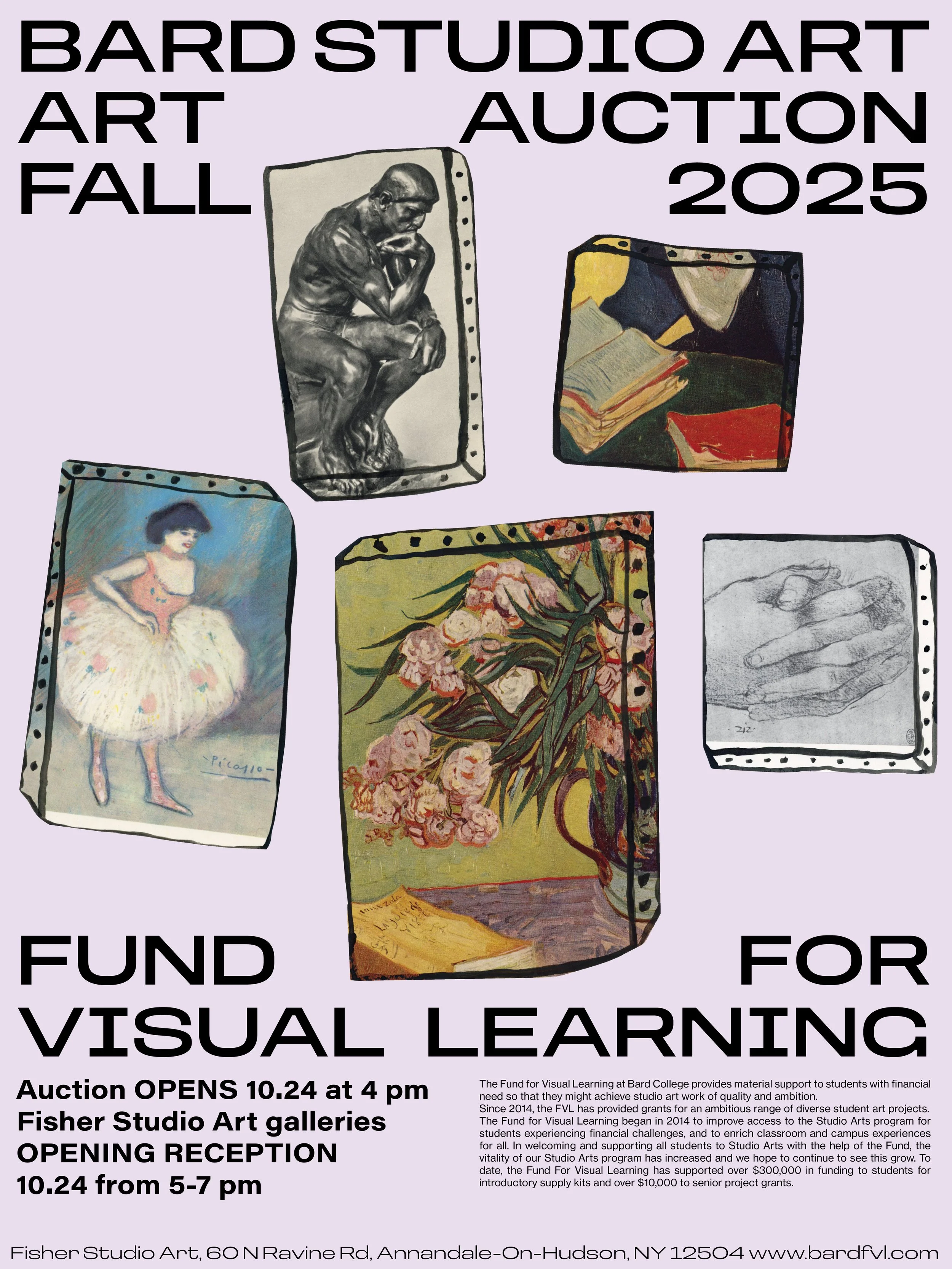 Please join use for our Annual Fund for Visual Learning Art Auction at Bard College in the Fisher Studio Art Buildings on October 24, opening reception at 5pm.